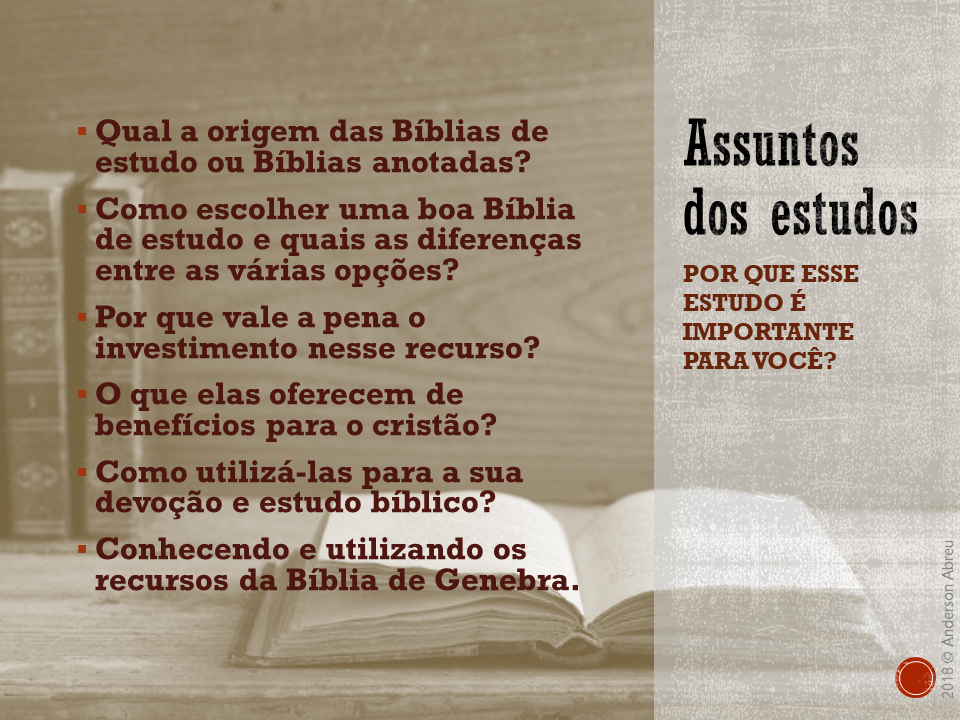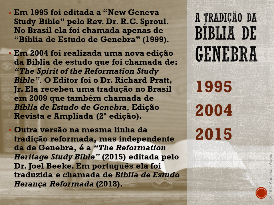 Um colega de ministério, Rev. Anderson Abreu, fez um ótimo estudo sobre os benefícios de uma Bíblia de Estudo com notas explicativas. Abaixo seguem as Bíblias de estudo que recomendo e o estudo que citei. Espero que estes materiais sejam úteis: